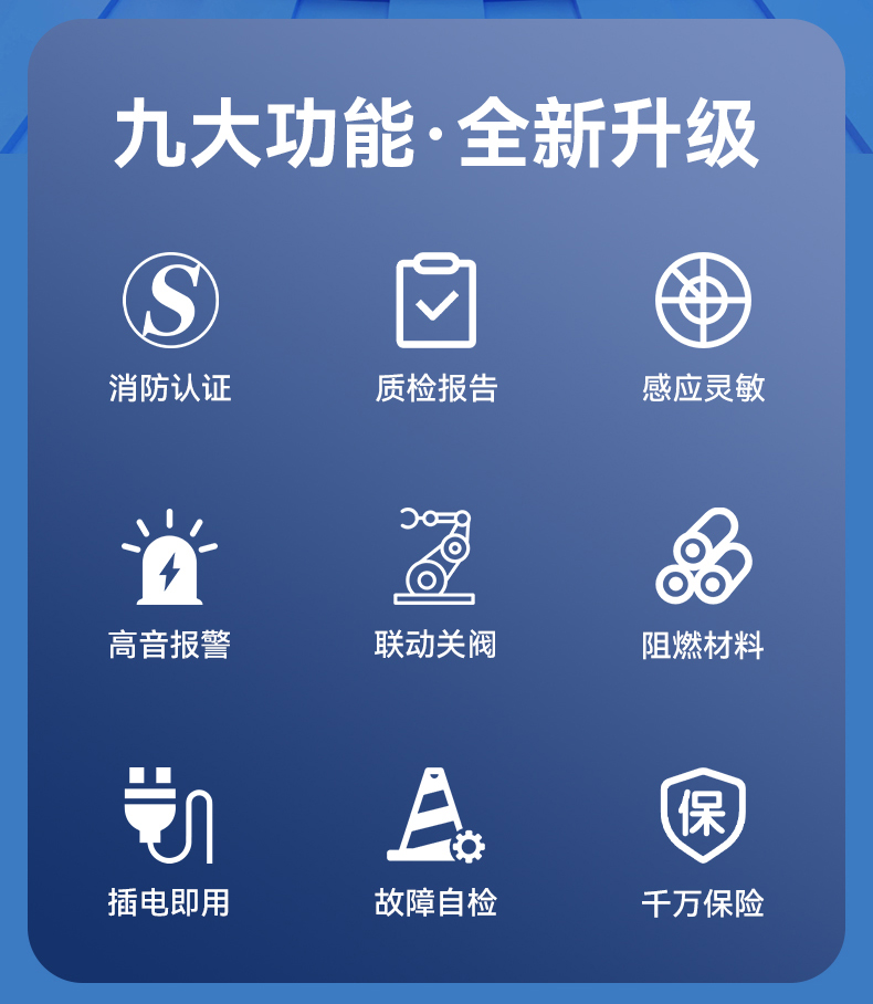 燃氣報警器 (型號PA-219) 產品規格 功能特點 資料下載 燃氣報警器 (型號PA-219)1、多種氣體檢測2、90分貝高音報警3、探測靈敏4、故障質檢5、聯動切斷燃氣6、中國平安保險7. 可連接機械手閥適用場景:適用于家庭廚房、酒店廚房、食堂、商場等場所