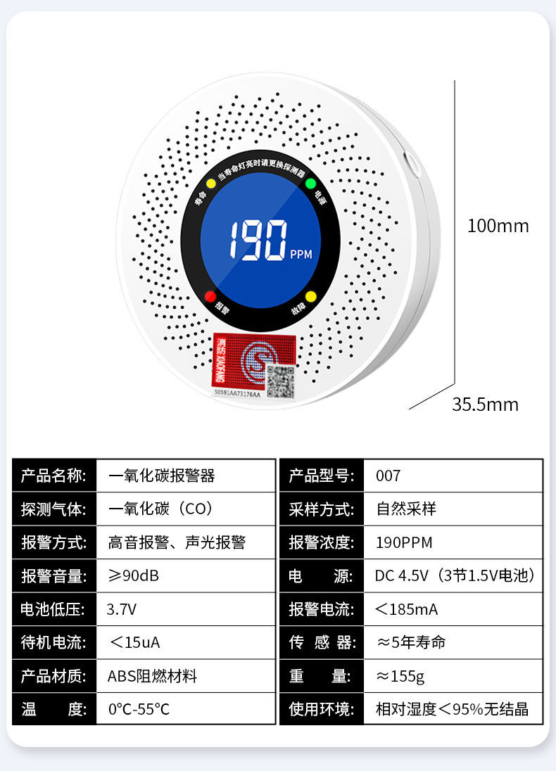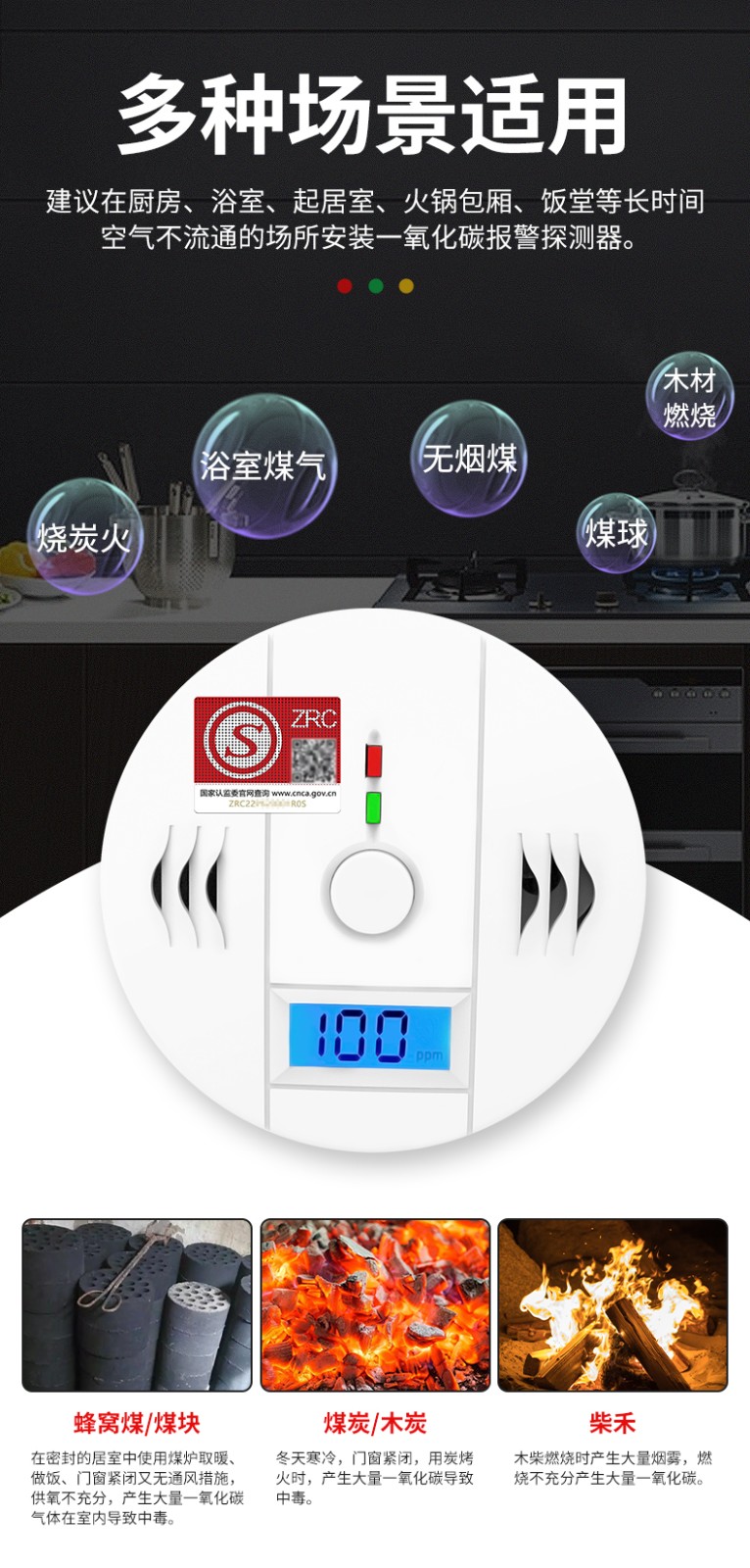 適用場(chǎng)景:適用于廚房、浴室、起居室、火鍋包廂、飯?zhí)玫乳L(zhǎng)時(shí)間空氣不流通的場(chǎng)所安裝一氧化碳報(bào)警探測(cè)器